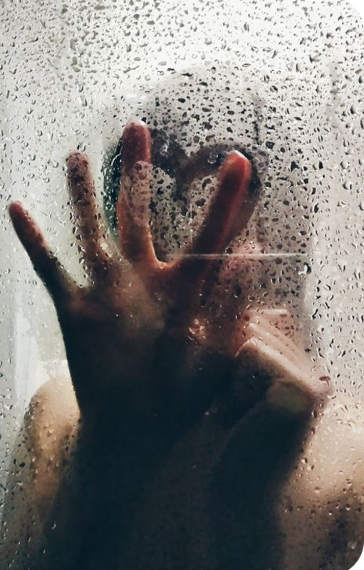 Your fingers grip your hair and pull it back, just as you might in any other morning. You can hear me take another step closer to you, the splashing in the water behind you. My movements break the constant dripping of the water to the floor. My hands and the first thing you feel against you, my palm sliding gently against your breast. Your smile grows.