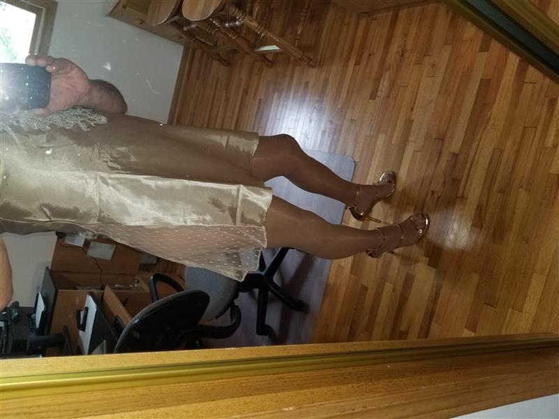 I saw I had an email from one of my friends saying that I looked good in my hose and my cock showing through my pantyhose. I messaged them back saying thank you for the comment and before long got a private chat request from them, I joined the chat obviously as this particular friend was a woman that seemed to enjoy looking at me in my pantyhose and girly clothes, which always made me hot and bothered. We did the usual pleasantries and she asked me what I had on. I told her, tan pantyhose, gold nightie and gold 5 1/2″ sandals. She then stated how she would love to see me in my outfit. I have also joined another site that you can go on camera and people can see and hear you.