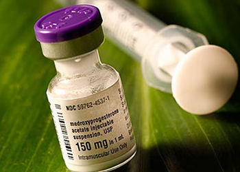 A few minutes later, Dr. Langbrook returns, holding a small metal bowl-like tray with everything he is going to need. Sealed packages containing the syringe and the hypodermic needle. A vial of Depo Provera. A bottle of isopropyl alcohol and antiseptic pads.