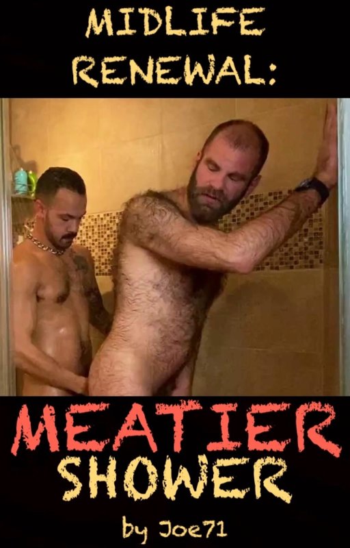 Ruck obliged, and the two men strained against each other ecstatically for several minutes, grunting and groaning under the hot, streaming water. Eric resumed kissing the back of Rick’s neck, rubbing his hands all over his wet body, including some long, slow strokes of the cock but being careful not to tempt ejaculation too much quite yet.