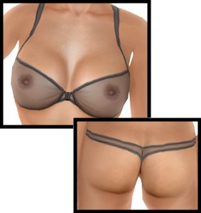 They all loved how her tiny bra barely covered only her nipple area, which was obviously visible through the small black triangular fabric, held by lacy strings, miraculously supporting the rest of her juicy womanly flesh which literally overflowed around it.