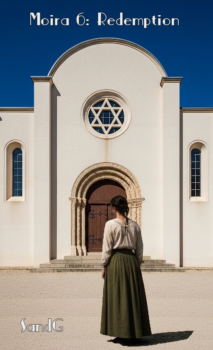 But before I reached it, something on my side of the street pulled me up short—a modest building, half hidden behind an open yard. I froze, eyes fixed not on the structure but on a circular window inset high in the gable. A Star of David set within it, soft and radiant in the midday light.
