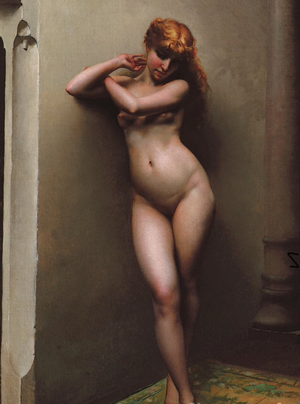 Dropping his brush into the can of mineral spirits, he would clean it in the morning. Time for a shower. One last look at his maiden. Her long, wheat-colored hair tangled around one finger, and her full cherry lips smiled seductively as she sat on the sill of a closed window, the same window that stood open behind him in his studio. This was the culmination of his desire. Her body was lithe and limbs willowy and her skin was kissed by the warm summer sun. Would that he could find her in life.