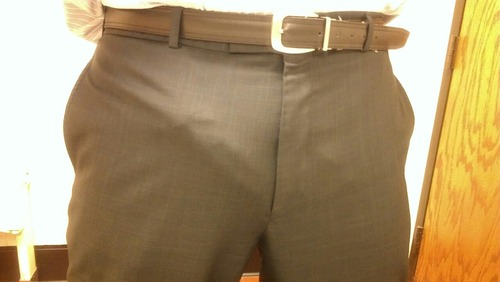 He grabbed my right hand and placed it on the front of his pleated khakis pants.