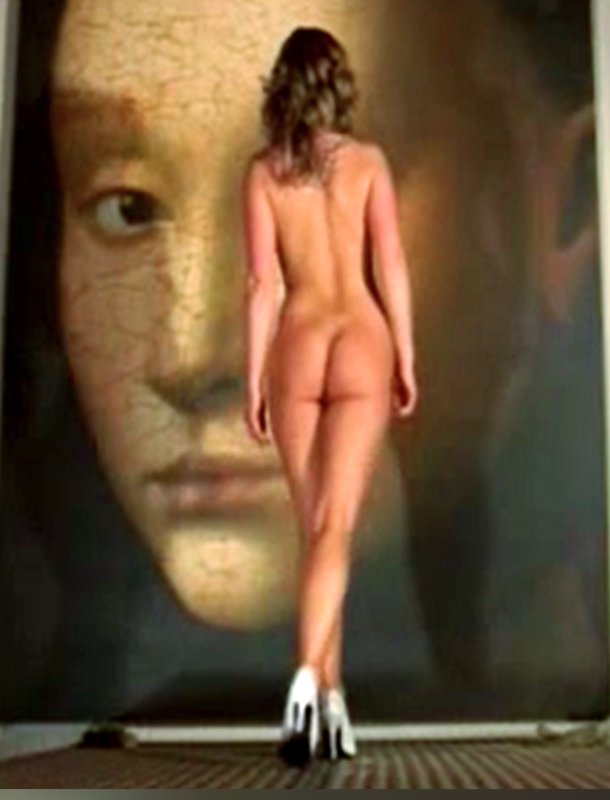 I was then walked up onto the metal platform by the two of them. The camera guy began taking flash photos, from behind me. They made me face the wall with the large mural, then they both began tying ropes around my ankles. I watched with interest at how adept they were with the ropes, and pretty soon, they had my ankles bound. They then pulled the ropes so my heels slid across the metal floor, my legs ending up far apart.