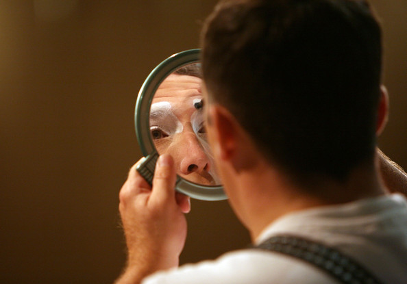 She looked down at her body and it didn’t look tired or old. It wasn’t a disappointment. It was however covered, smeared in red and white greasepaint. It was hilarious and her breasts began to shake as she giggled. Bambi looked up at her, his face a wet mess of smeared make up, it was so comical that she began to laugh, loudly, taking his hands and pulling him up.