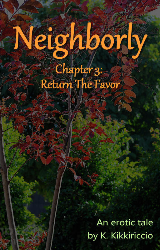 “Sure,” she said, lowering her lips onto the tip and giving it a wet, slurping kiss. “Just being neighborly, you know.” They laughed as she pushed his pants and boxers down more, revealing the entirety of his cock including his balls. She heard him moan and felt his fingers in her hair as she took the whole head and two inches of shaft into her mouth. It was the first cock she had had in years, and she wanted to savor it.