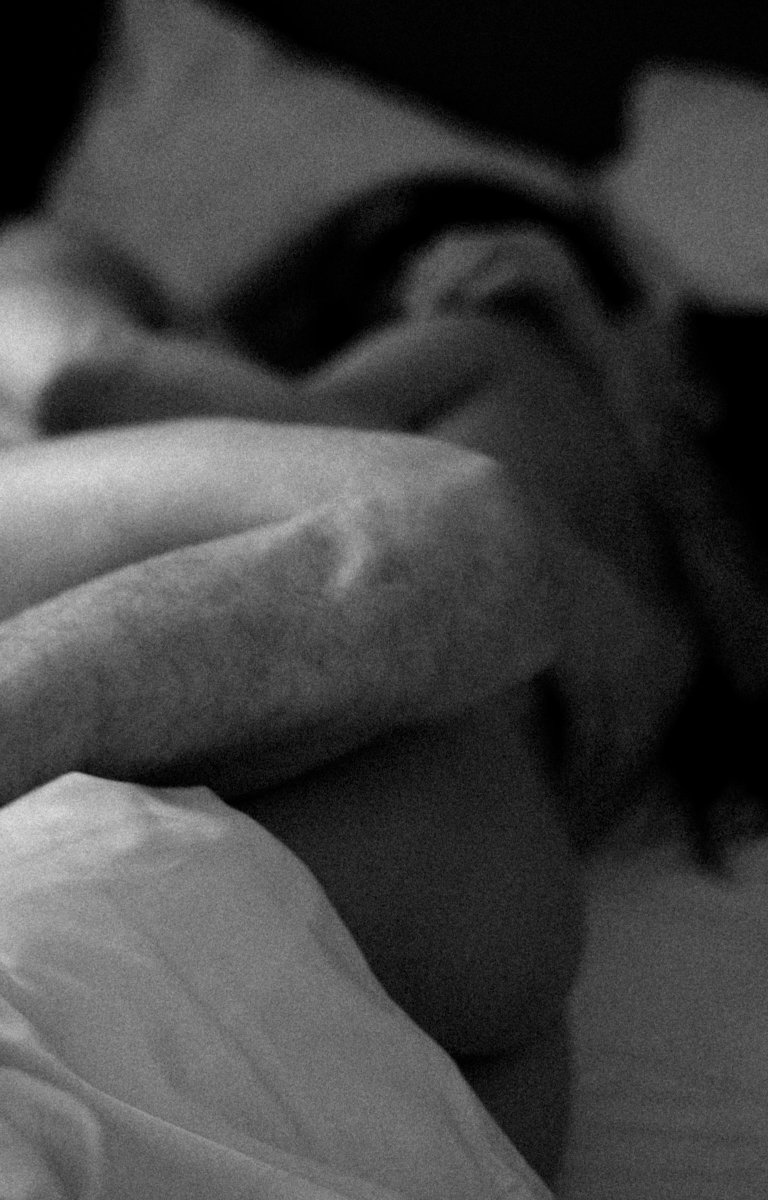 He woke when the blinds opened. One of her nipples, and then the other, rolled over him. He looked out the sleeper car window. It was pink early morning; the train was passing little houses; cars were waiting for the train to pass.