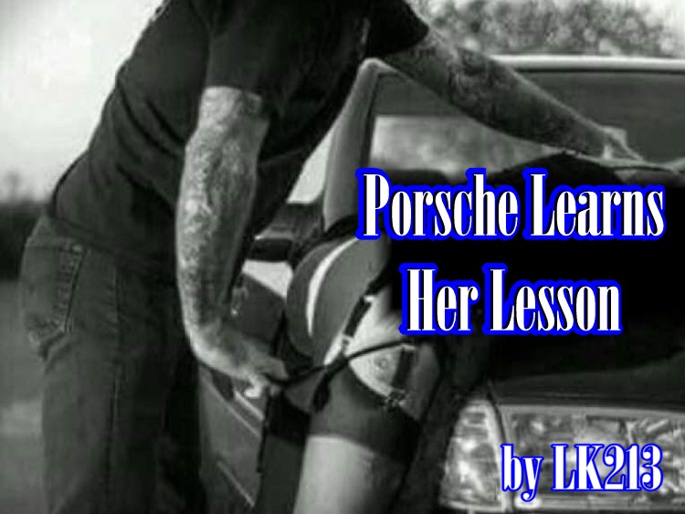 Porsche quickly exited the car and met me at the front of the car.  She stood there looking up at me with a fiery lust in her eyes that made my cock twitch hard in my pants.  I grabbed her by her waist and pulled her hard against me.  She whimpered out loud and instinctively thrust her hips against my hard cock, like a good little whore.