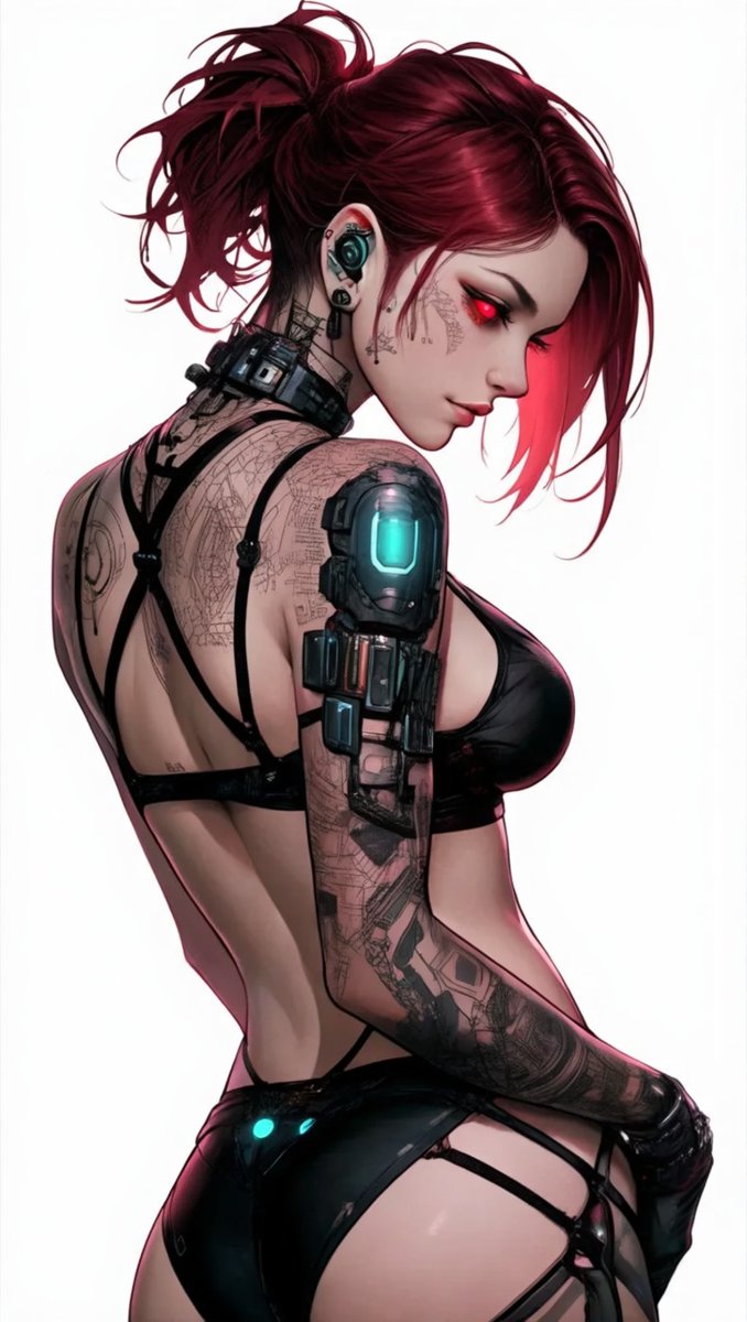 The red lines of code blurred into streaks, racing faster and faster across her vision. Trinity’s breath sputtered, her heart pounding like a drum as the cocktail of stimulants, mood enhancers, and designer narcotics surged through her veins. Her cybernetics flared bright purple to a deep red, almost consuming her figure in their brightness. She could barely feel the floor beneath her heels. Every nerve, every synapse was raging with primal fire.