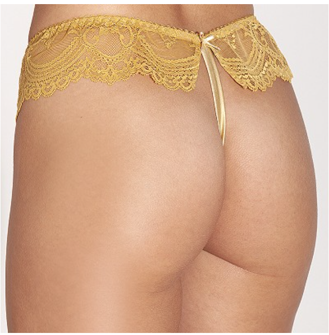 It was after we had both cum a couple of times and Janet was in the shower that I noticed the yellow thong just lying on the tangled sheets. This was an amazing shot that said it all while displaying the thong for the website. Janet came out of the shower naked and saw me working with my camera. She really liked the shot.