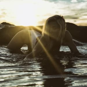 I can see her slowly arch her back and open her thighs for me. Her hands clench onto the veranda of our rented accommodation. The water is dripping onto her and flowing between her breasts and down over her tummy and onto the faint semblance of her pubic hair. I can see the droplets fall from her sex onto the pale white wooden floorboards. I see droplets, like sparks, bounce upwards and cascade sideways when they impact her erect nipples. Nipples I am going to suck on when I get close to her.