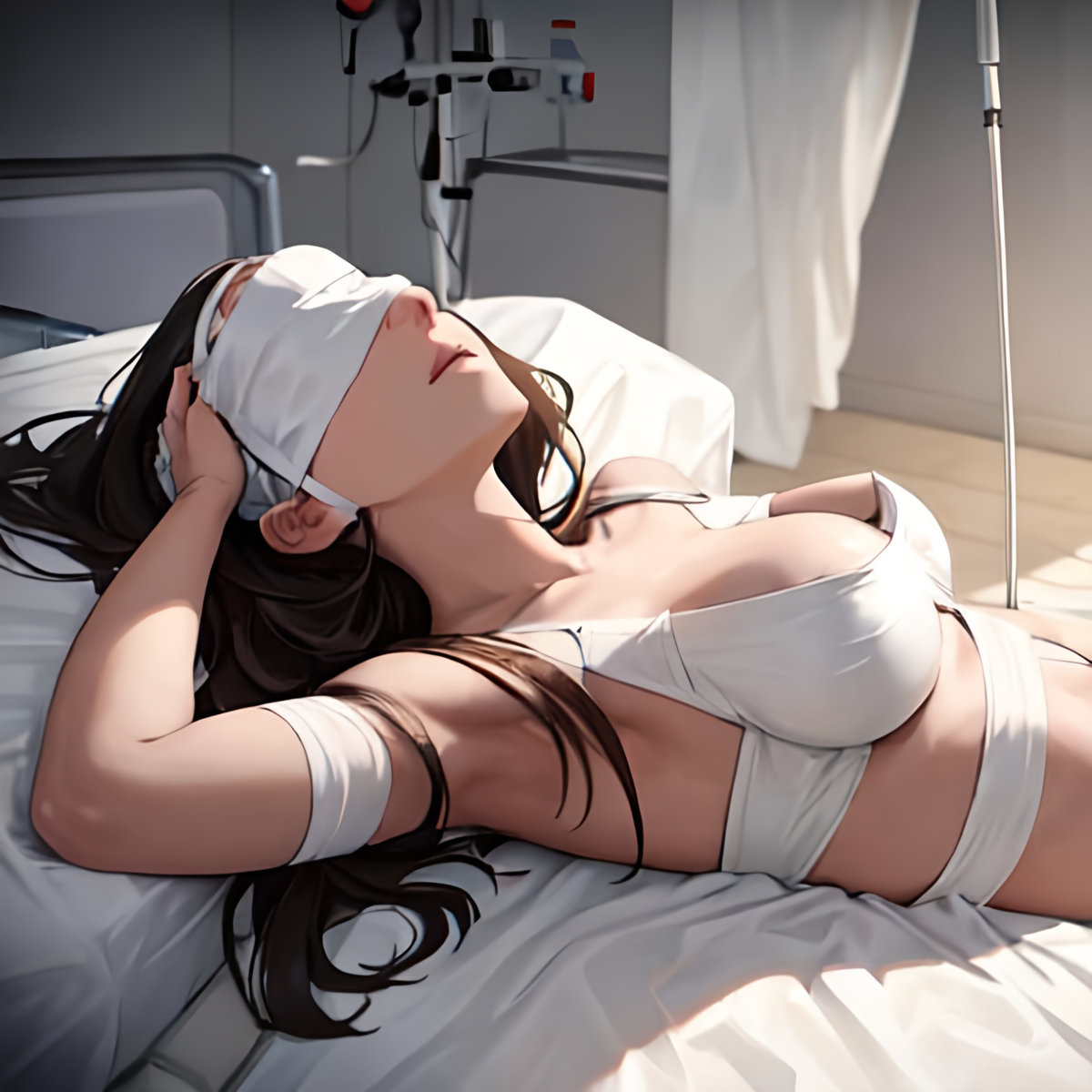 Ivy gasped as she felt Mike’s hands caressing her belly and slowly moving down to her crotch. The nurses’ hands were much softer, but she loved Mike’s strong ones! Then he paused and she heard him unzip.