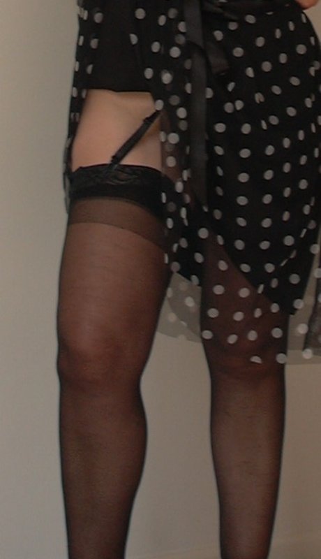 The Merry Widow fits snug but shapes the body and lifts the boobs. Then stockings—I have to admit, when I put on a pair, it feels very erotic.