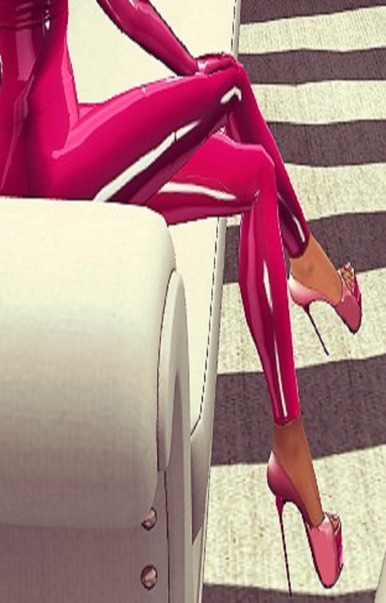Finding Daphne in the spacious Great Room he gazes on Her delicious beauty and feels just a twinge of guilt at so deeply desiring Her. Then She crosses impossibly long, shapely legs glistening in metallic latex and dangles a platform pump sporting a dagger-sharp, spiked heel. A sly, sinister smile develops on Her pouty, pillowy lips and She purrs, “Come here, Baby,” and at that moment all his withering resistance vanishes.