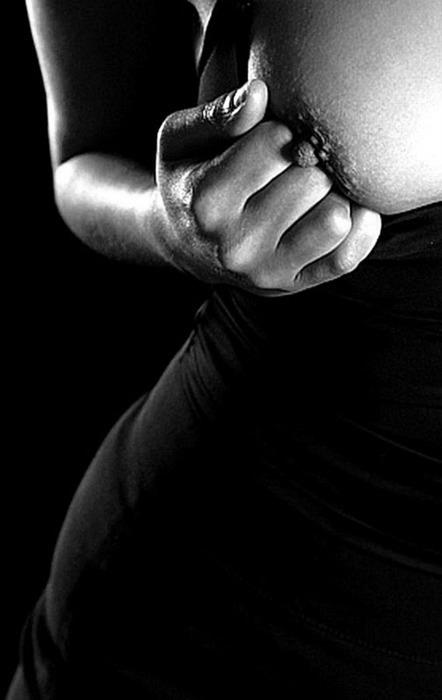 His hand slid down the delicate skin of her neck, eased over the curve of her breast and the hard bud of her nipple through the delicate material of her dress.