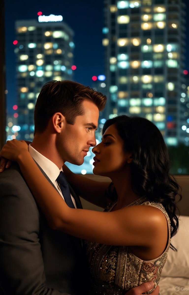 As the afterglow settled, Sushmitha traced lazy circles on his skin. “My friend Priya… she’s Punjabi, married, stunning—curvy hips, full D-cup breasts, long silky black hair down to her waist, always dressed so elegantly in salwar kameez or sarees that hug every inch. She just discovered her husband’s been cheating for months. She’s heartbroken, furious… but lately she’s been asking questions. About feeling truly desired. We’ve talked late into the night—she’s curious, aching, ready to explore. After drinks at the Albion Hotel next week—maybe we invite her back here? Let her watch… or join. Let her feel what real passion can do for a neglected wife.”