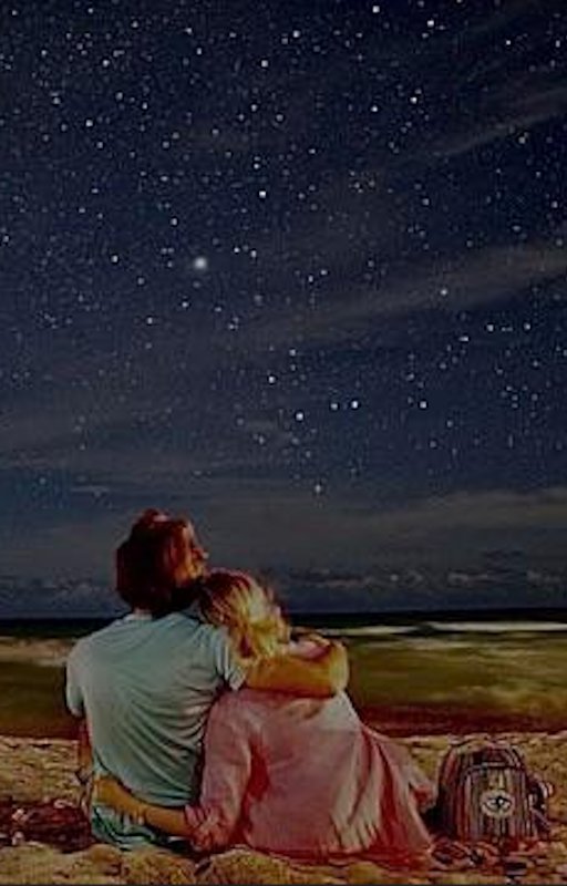 You lift yourself up, the outline of your head blocking the stars. Tresses of blonde hair, now black as the night, softly graze across my face. You lower your lips to mine, pressing gently on my flesh before pushing your tongue inside seeking my response.