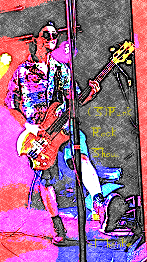 Ed preferred to be the weirdo in the background, radiant in his sheer presence, eccentric performance and shrill attire: fluorescent-laced, worn-out Bordeaux-colored doc Marten’s, baby blue Bermuda shorts, synthetic unbuttoned Hawaii shirt revealing his xylophone-rib abdomen and a reversed baseball cap with his favorite rapper’s logo on it. Why? Because punk rock, that’s why! Even the washed-out fifties rug bass strap only added injury to this blatant insult to the eyes and yet he pulled the stunt with his trademark knowing grin.