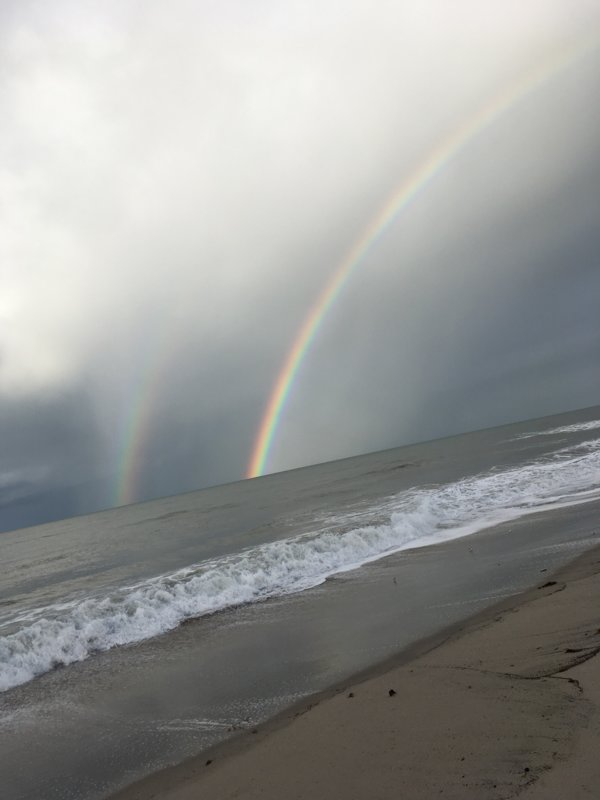 Momentarily, I was out the front door, and right near Heaven’s gate I became aware of something stirring in the bushes. I turned to get a closer view and stared into a pair of eyes which gave me a furtive glance. Out popped a sky-clad creature. It started running. I immediately gave chase, following a rear-end that looked very much like my own. The race turned into a marathon, moving through forests, across rivers, up mountains, down hillsides until finally, under an errant rainbow, she ended the pursuit by turning directly towards me, as she sat herself on the moist soil below, and beckoned to me with a curled forefinger. By thus doing so, she astonished me by revealing swollen breasts and an apparent lack of a dick.