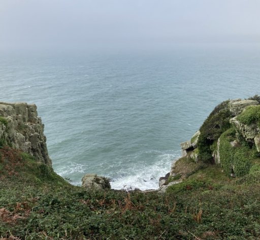 Voices. The spell is broken. I turn and walk back down the cliff path, alone.