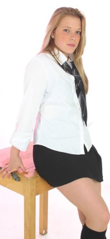 Suzy walked to the offices in her school uniform, since even though she was in the last year, the school insisted that every pupil wore a uniform. As the style at school was to wear skirts as short as possible, that they could get away with, knee-high black socks, her school shirt was a size too small, so it pulled across her tits, her black bra exposed between the buttons and her blazer open. Her long dark hair was usually tied back and up but she wore it loose for the job, just in a ponytail.