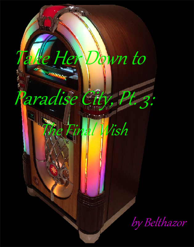“I love you, too, Arion. Always.” She flung her arms around his neck as the chorus hit, their lips uniting for the last time. His arms closed around her waist for just a moment before, in a cloud of green smoke, both Arion and the jukebox vanished.