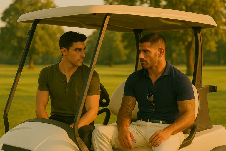 He didn’t say much at first. Just a nod when I got close, a smirk tugging at his lip. We played through two holes… enough time for him to show off, for Ralph to somehow lose a ball into a bush, and for Jake to give up entirely and stretch out on the grass like a drunk model.
