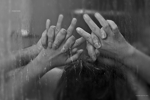 He lifted the shower head from its cradle and rinsed the shampoo from her hair. Then he pointed the water over her back and between them, so it coursed over her front.