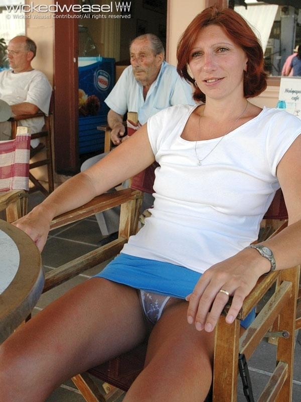 “I’ve pulled my skirt up, took my bra off and my panties are in my purse.”