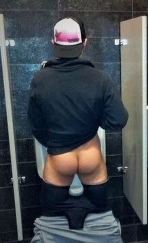Just as I was finishing up, a blonde-haired guy who was roughly my age walked in and headed to one of the urinals. I was about to leave when I noticed in the mirror that he had dropped his pants down to roughly knee level exposing his round, tanned ass.