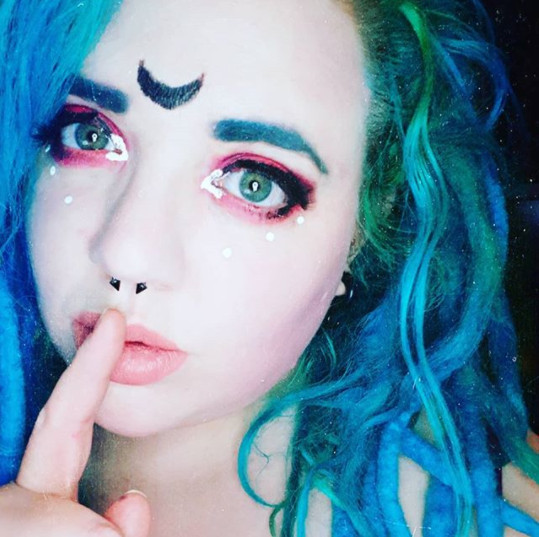 Lenore was particularly fond of her ‘Goth boots’. She donned a pair of knee-high Demonia platform buckle boots daily. Her smooth raven black hair fell to her mid back and was usually in pig tails, accentuated with red and white dread locks. She accentuated her eyes with black eyeliner and purple eye shadow.