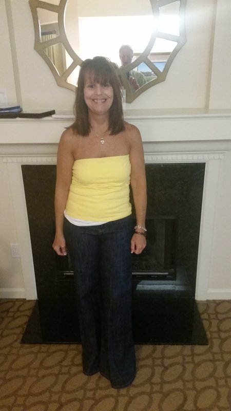 I went to an empty room to try the clothes on. The shorts showed a lot of cheek, even though I did not have much back there to begin with. There were also holes in the shorts exposing even more of me. The shirt was very tight . The bottom of the shirt was cut off exposing my stomach, and a hint of the bottom of my breasts. The neck was cut out allowing the shirt to lay off my shoulders. The sandals had a very high heal, they were going to hard to walk in, I had never worn any shoes with heals before. The shoes showed off my little toes that I painstakingly painted.