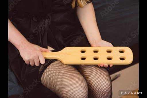 He grew very aroused at her continued scolding. She reached into her bag and pulled out a long, thick wooden paddle with holes drilled in it. A sinking feeling filled his stomach as he realized how much this was going to hurt. She set the paddle down on the table in front of him. It made a loud, dense sound against the table.