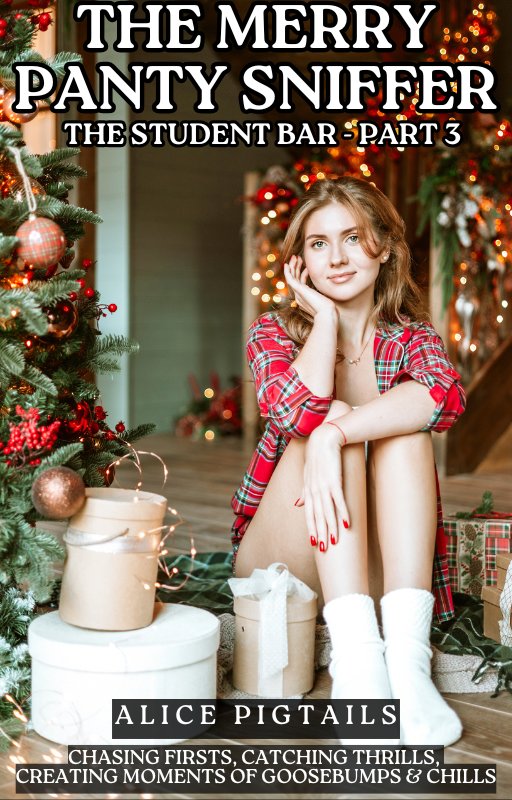 How many times has he done this, and I’ve walked innocently around after he’s smelled me and wanked? Oh my god, I realise with an extra piercing tingle when he returns downstairs and kisses his wife under the Christmas mistletoe, he will have my smell and taste on his lips and face. Oh my god, I want to be in a prime position to watch that happen, so I giggle. This sneaky panty theft moment is too much, too much to see and feel and sense and hear as he intensifies his wanking over me.