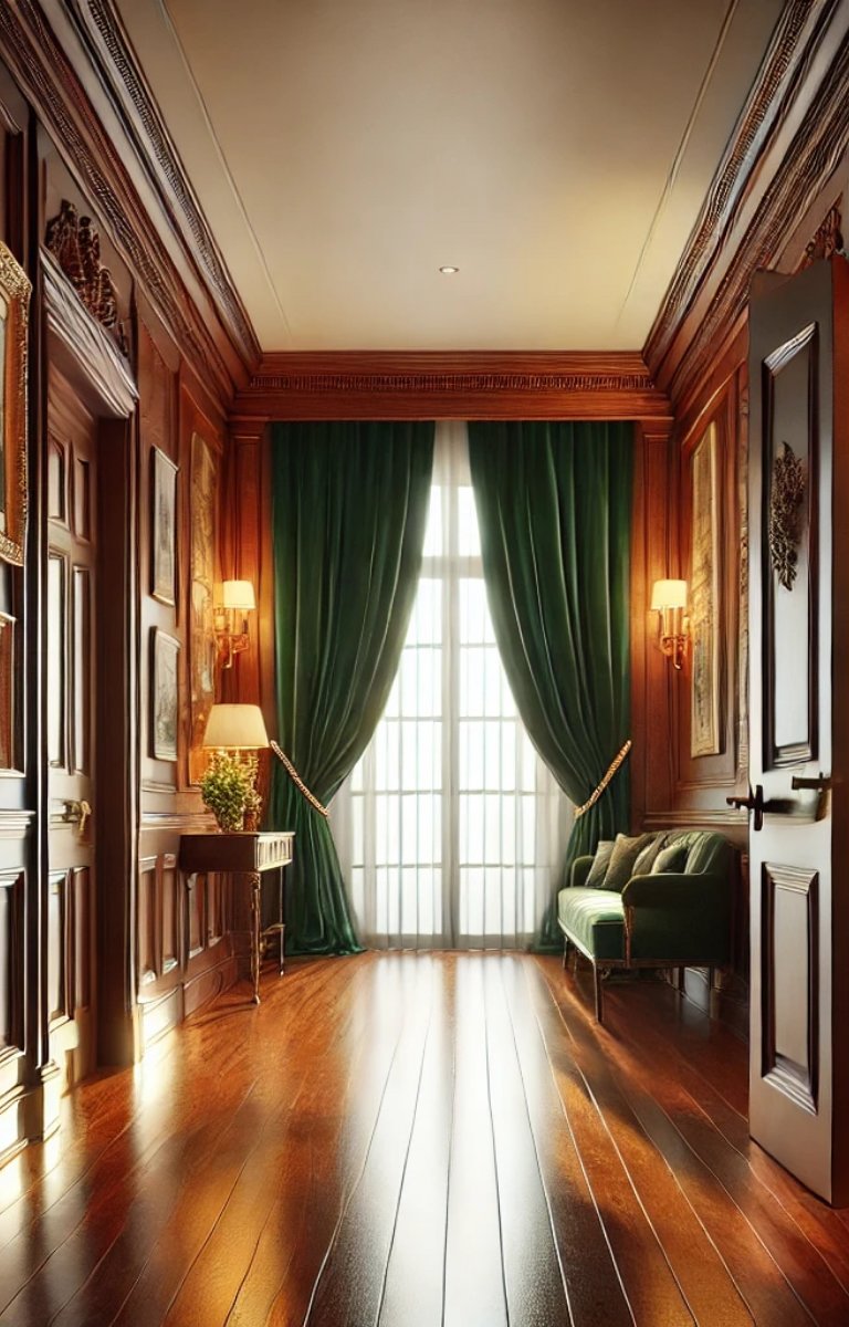 Standing in the grand foyer, Ashley took in her surroundings. A large chandelier bathed the space in a warm, sensual glow, while thick green velvet curtains framed the windows, adding a touch of opulence. The traditional decor gave the home an unmistakable old-money feel.