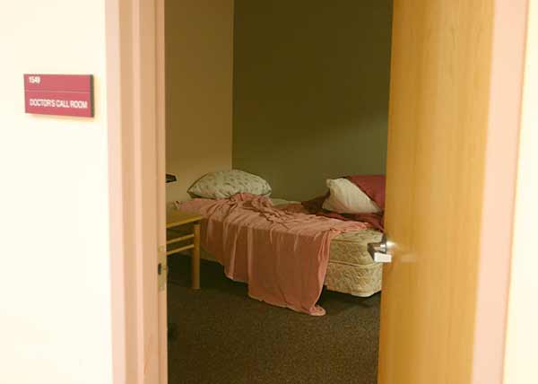 Grace headed in the direction of the elevator but stopped in front of the on-call room; a place where doctors could try to catch some sleep when working long shifts. Seeing no one, she opened the door and stepped inside, shutting and locking it behind her.