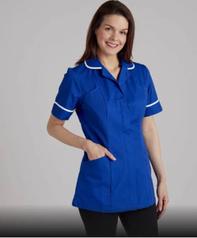 The ladies are required to wear a blue, short housecoat with a zip up front that reaches their lower thighs as part of their uniform. In addition, they can choose to wear black skirts or trousers that they bring with them.