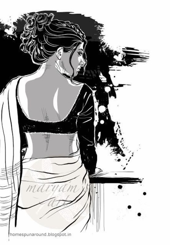 In the dying lights of the hazy evening – flags fluttering raucously around her in a sudden solitary gust of wind – sat the spiritual leader of the ashram. Her upright figure was draped loosely within the single fabric of a white saree. Locks of her long golden hair hung loose about her face and bare shoulders. She held herself in a position of meditation – body erect, chin up, deep breaths in and out, the beginnings of a mocking smile lingering along the corners of her mouth. The soft fabric of the saree crossed upward across her gently heaving bosom, falling in a pleat down her back, leaving one of her sides bare down to the waist. I found myself stealing glances at the beautiful exposed curve of her body, her flat stomach, her lips. Yet another gust of wind made the fabric flutter about her body, uncovering momentarily the swell of one of her breasts. She opened her eyes and looked at me.