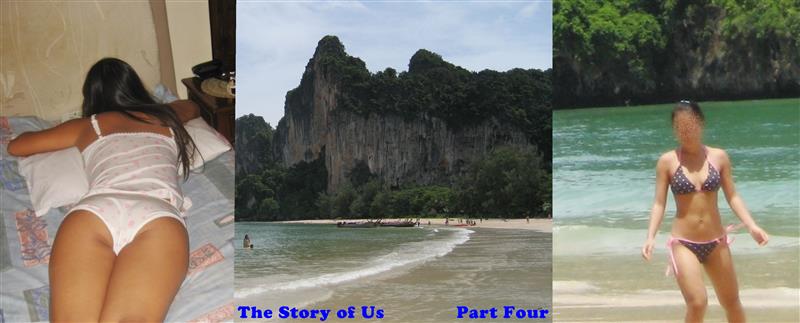 Hours later Railay Bay opened up before us like the gate to paradise. Sheer, jungle crested, karst cliffs tumbled dramatically in a near perfect semi-circle, down to a pristine white sand beach, gently kissed by the warm, clear waters of the Gulf of Thailand. There were no roads here, no cars and the few resorts were squeezed into a gap between the towering cliffs. If any place was special enough for her first white cock, this was surely it.