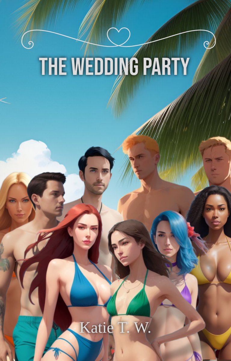 Rachel and Sophie, two of my bridesmaids, were dancing barefoot in the sand, their dresses hiked up, hips swaying with exaggerated moves meant to make the guys groan. Rachel, pale skinned, with striking blue hair, had a teasing smirk as she moved her short body, bouncing in time to the music. Sophie, with light brown skin, her dark curls and wicked energy, was a little more wild, tossing her head back with laughter, her hips rolling in a way that made her a natural temptress, while Tyler, one of the groomsmen, cheered them on his tattoos catching the light from the tiki torches. Tyler, all cocky charm with his green eyes, short brown hair and easy grin, was the life of the party, never taking anything too seriously, except maybe his own reputation as a lady’s man.