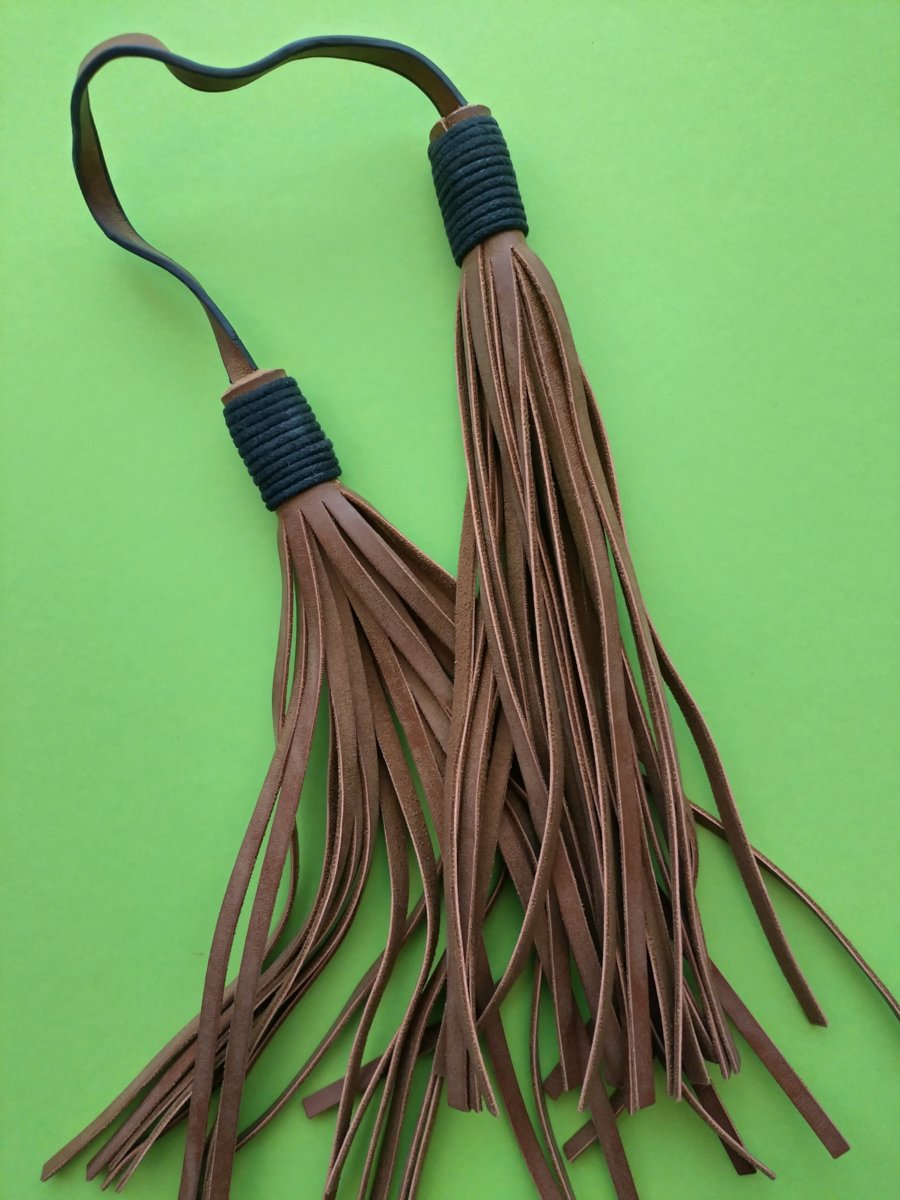 A strip of leather, with a tassel at either end, each made of about two-dozen eight-inch long leather strips bound with cord. I’d removed it from a bag I’d bought in a charity shop, because I don’t like fussy detail on things.