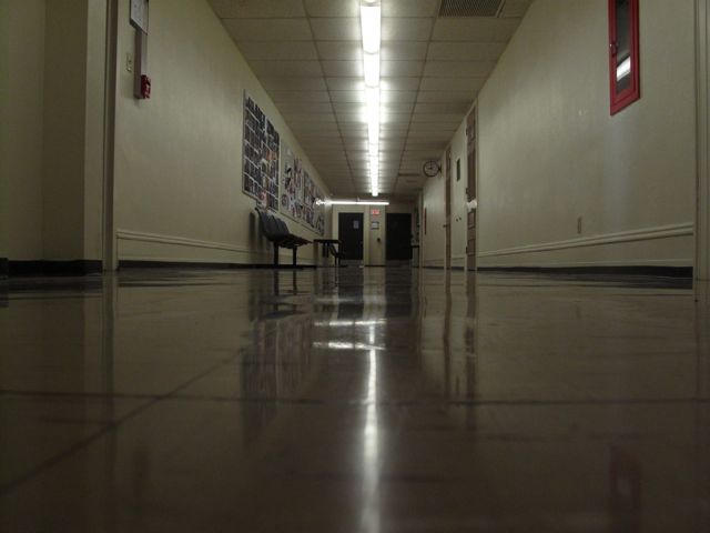 The walls of the hallways were pure white. The carpeted floors were grainy and flat. The fluorescent lights; patterned across the ceiling. The three of us walked together. My step-brother, Zach, led my cousin Lacey and I through the halls. Lacey walked next to Zach, I trailed behind both of them. We stopped walking at a pair of doors; a big maroon sign over the doors read “Student Center.” It was a large hall, with tables and chairs crowded throughout. There were a few students crowded around tables, but they mostly kept quiet and focused on their work.