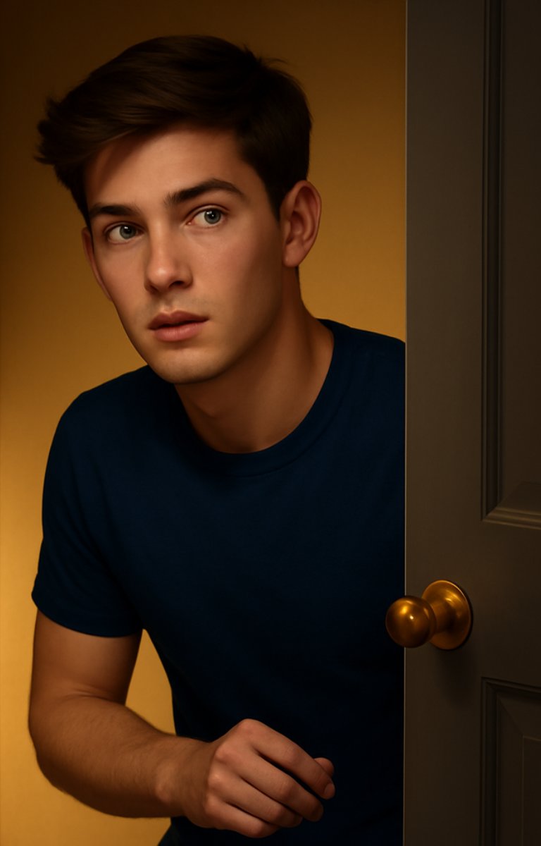 His socks made almost no sound against the hardwood as he moved down the hallway. With every moan that echoed from behind the cracked bedroom door, something tightened inside him. Shame. Excitement. Confusion. It all tangled together in his chest like a wire about to snap.
