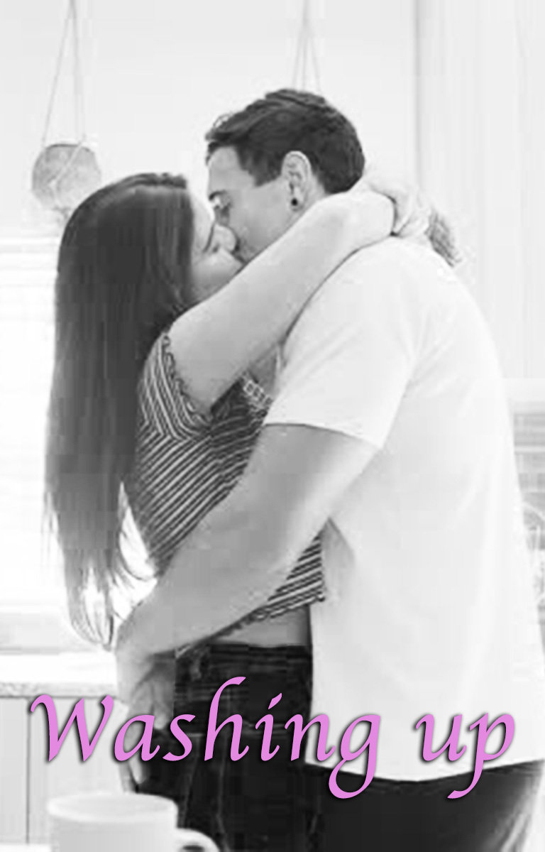 It was her turn to do the washing up but with a glint in her eye, she turned to him and ran her fingers up his inner thigh.