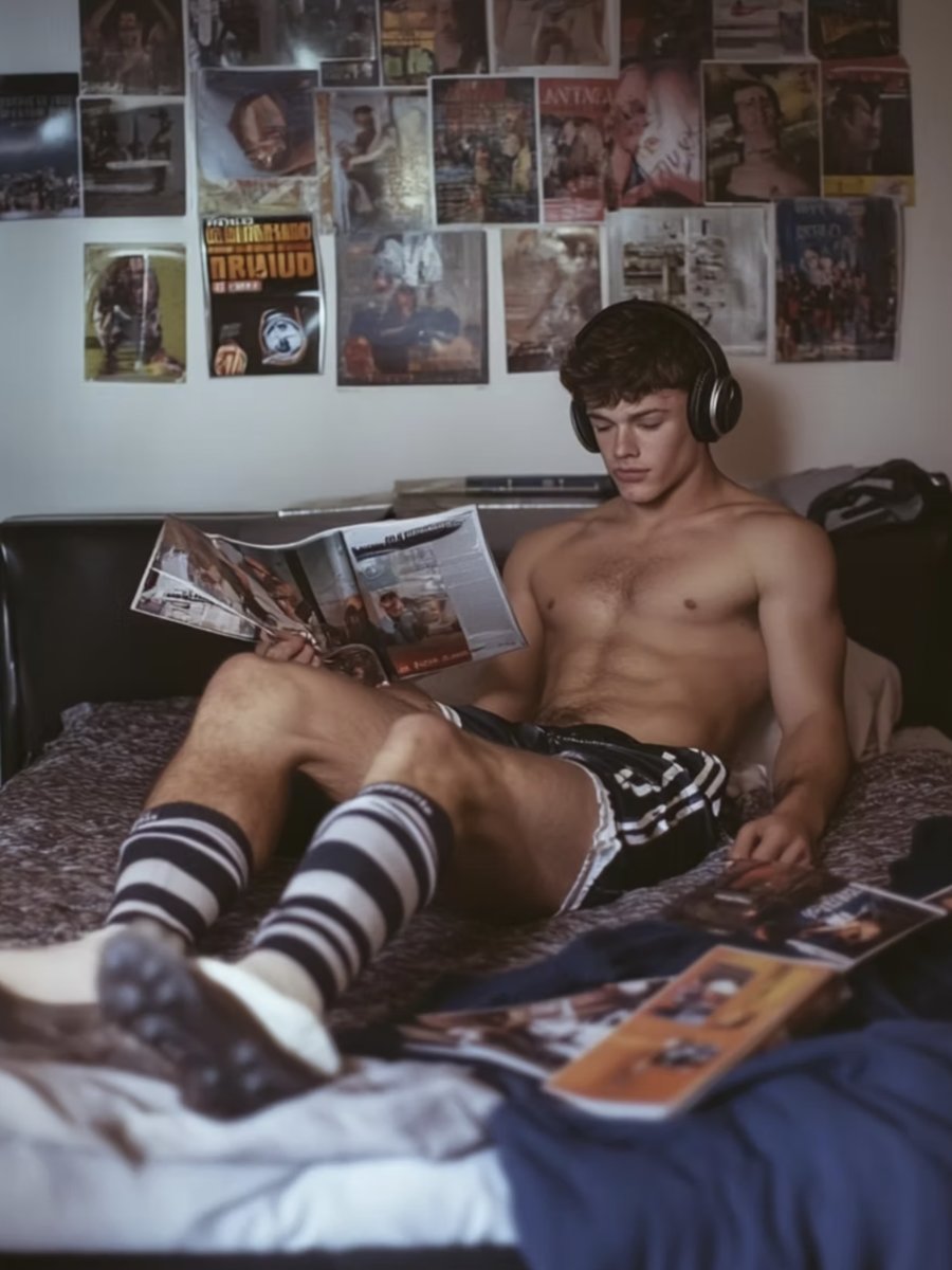 Now, up here in his room on his own with his big Bose noise-cancelling headphones on, he was feeling horny all over again. He’d already wanked twice today – he produced a minimum of three loads a day – but he found his hand feeling the bulge in his soccer shorts again, feeling it until it was hard. Then he slipped out of the shorts and lay on his bed thinking about the headmistress looking at him, wondering what she’d think if she could see him now in just his stretchy little underpants, a huge boner leaking precum into them. He closed his eyes, put his hands down his underpants and started to swirl the precum around the sensitive head of his cock, which always made him gasp.