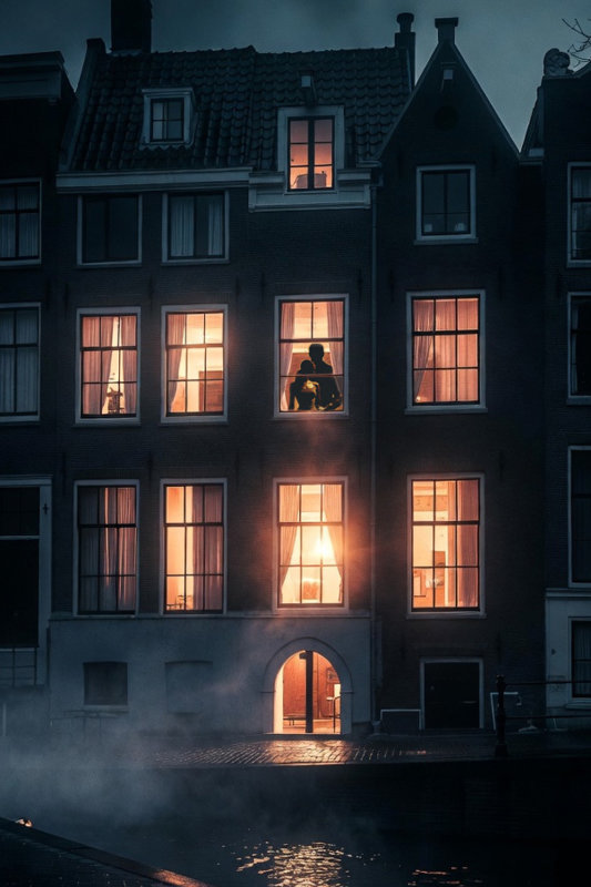 We locked the door, walked down the creaking stairs, and stepped into the wet Amsterdam night. A taxi waited at the curb, headlights cutting through the drizzle. The driver glanced at us in the rearview as we slid into the backseat. Cathy’s dress rode up slightly when she crossed her legs. I stared at the exposed skin of her thigh until she noticed and squeezed my knee.